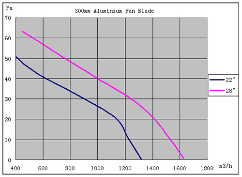 ECQ motor Air performance curves measured at a constant speed of 1,300 rpm.
