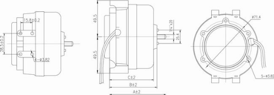 | 型號(hào) | 額定電壓 | 頻率 | 輸入功率 | 輸出功率 | 額定電流 | 轉(zhuǎn)向 | A mm | B mm | C mm |